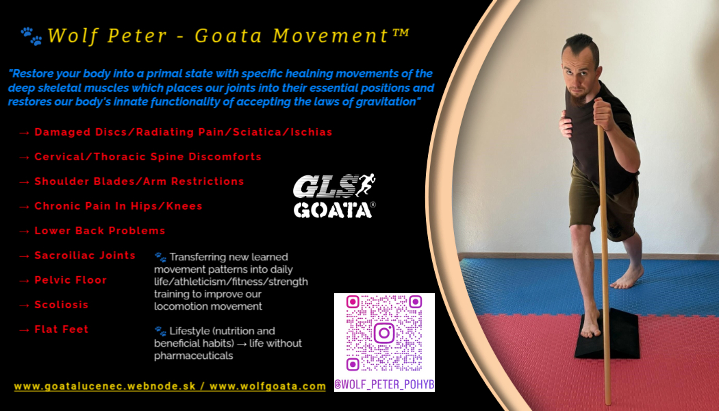 I was already totaly tired watching how today's world works in a cursed circle of pain, so I began to study the physiology and anatomy of the body. There are still many people who desperately prescribe painkillers, apply injections or undergo surgery just because they have not learned to properly accept the influence of natural gravitational laws on our body - our temple. In short, it is a total change in the use of the deep skeletal muscles so that we return the original geometry and function of our body to its natural state. Movement therapy looks at the body as a whole, which means that everything is interconnected. So it is a return to original functionality by reworking incorrect movement patterns (which today's culture has taught us) to our innate and most natural - leading a life without restrictions and chronic pain.
